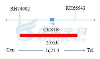 1q21 (CKS1B) 是MM中最为常见的遗传学异常,CKS1B基因扩增导效细胞周期循环的上调,从而引起很多增殖性疾病。 1q21扩增往往与MM的浸润表型相关,预后差,疾病进展快。