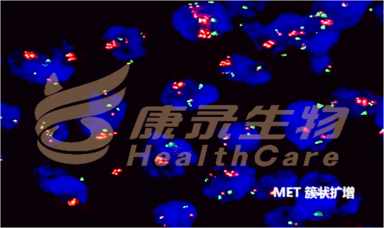 C-MET可在多种肿瘤中出现扩增(卵巢癌/乳腺癌/肺癌/甲状腺癌/胃癌/胰腺癌/结直肠癌),是一个独立的预后差的评估因子。 在非小细胞肺癌中,C-MET基因扩增与预后不良及EGFR-TKIs耐药密切相关(可见于11%-22%病例)。 C-MET基因扩增是克唑替尼(crizotinib)的作用靶标之一,在MET基因扩增的病人中用药一段时间后肿瘤能明显缩小。