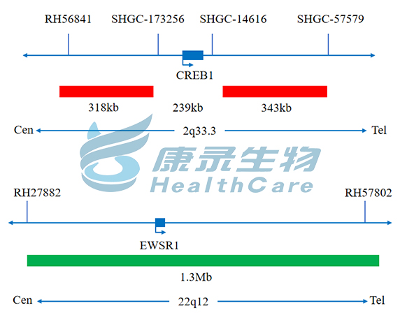 90%以上的肿瘤具有t(2; 22)易位,导致EWSR1-CREB1基因融合,用于辅助诊断。