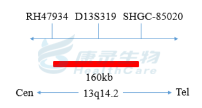 D13S319(13q14.2)标记为橘红色