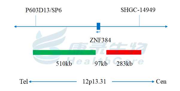 ZNF384基因5’端标记为橘红色; ZNF384基因3’端标记为绿色。