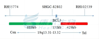 BCL3基因3'端标记为橘红色; BCL3基因5'端标记为绿色。