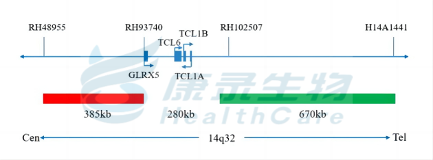 T-PLL患者最常见染色体异常为14q32/TCL1重排(>90%),检测TCL1重排有助于鉴别T-PLL和其他T淋巴细胞增殖性疾病。