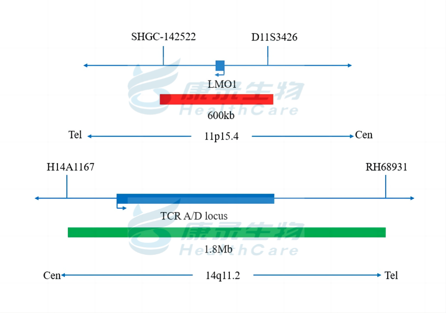 亚型之一的TAL/LMO T-ALL在成人占比为12%,在儿童占比为32%,这类特点是碱性螺旋-环-螺旋(bHLH)转录因子家族成员(TAL1和TAL2)和/或LIM-only结构域(LMO1、LMO2和LMO3)基因的重排,LMO1基因(11p15)与T细胞受体α/δ基因发生并置,导致前者调控失常而高表达。