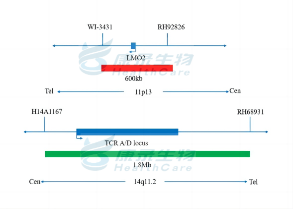 亚型之一的TAL/LMO T-ALL在成人占比为12%,在儿童占比为32%,这类特点是碱性螺旋-环-螺旋(bHLH)转录因子家族成员(TAL1和TAL2)和/或LIM-only结构域(LMO1、LMO2和LMO3)基因的重排,LMO1基因(11p15)与T细胞受体α/δ基因发生并置,导致前者调控失常而高表达。
