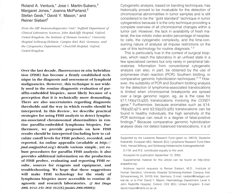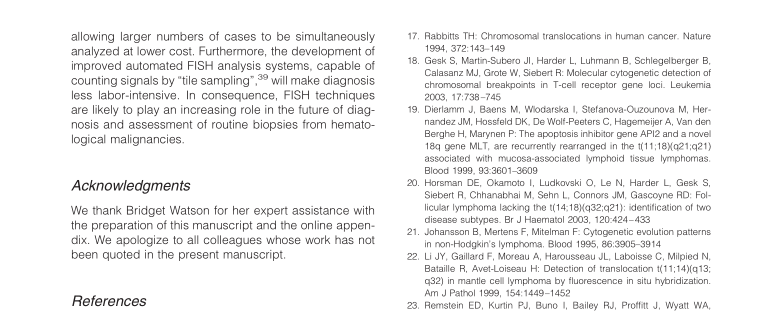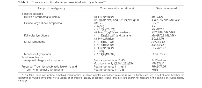 FISH Analysis for the Detection of Lymphoma- Associated Chromosomal Abnormalities in Routine Paraffin-Embedded Tissue
