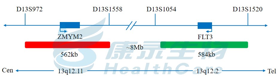 ZMYM2全长橘红色探针;FLT3全长绿色探针