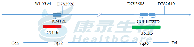 7q22橘红色探针;7q36绿色探针