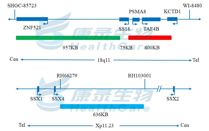 SS18橘红色探针;SS18绿色探针;SSX青色探针
