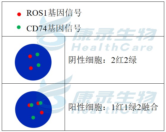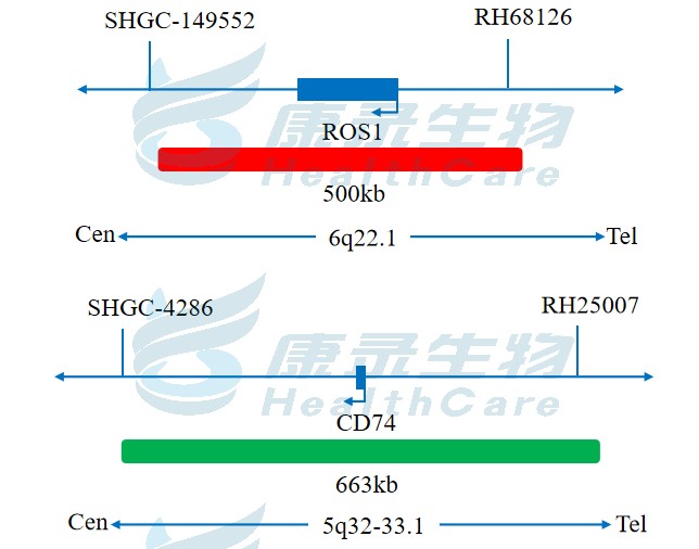ROS1全长橘红色探针;CD74全长绿色探针