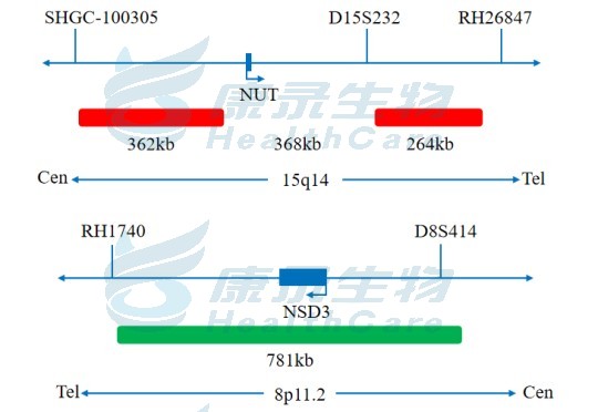 NUT全长橘红色探针;NSD3全长绿色探针