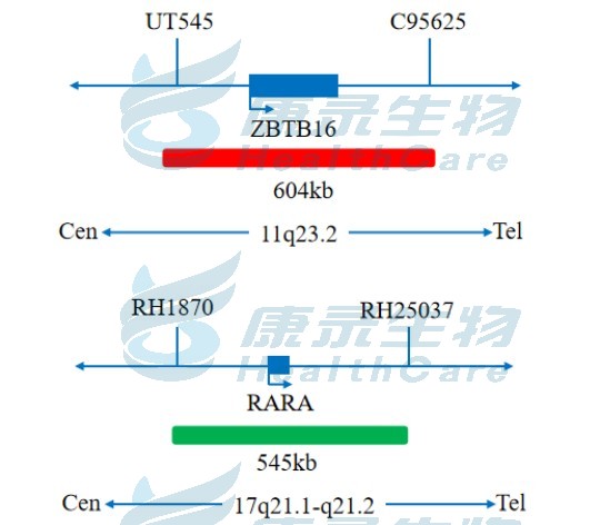 ZBTB16全长橘红色探针;RARA全长绿色探针