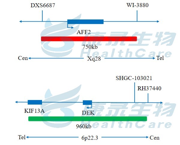 AFF2 橘红色探针、DEK 绿色探针