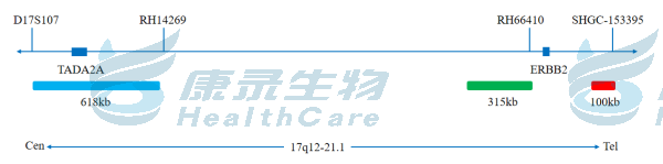 17q12 橘红色探针、 17q12 绿色探针、 17q12 青色探针