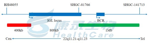 分子遗传学特点为MYC基因与IGH或IGK或IGL发生融合,此断裂探针用于判断是否发生IGL断裂