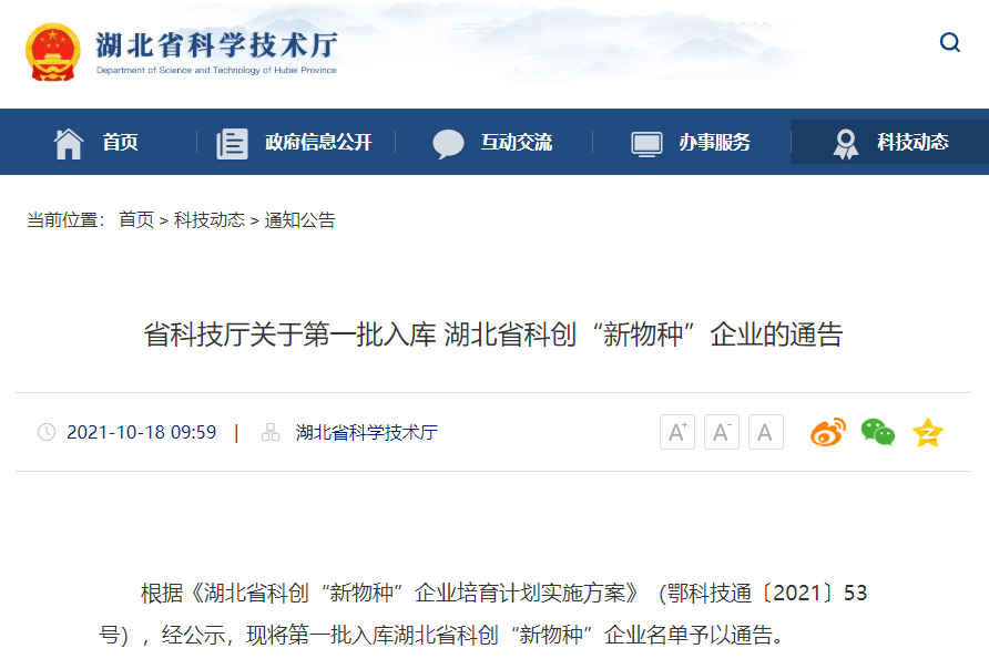日前,湖北省科技厅公布了第一批入库湖北省科创“新物种”企业名单,6776永利集团(简称“6776永利集团”)成功入选。